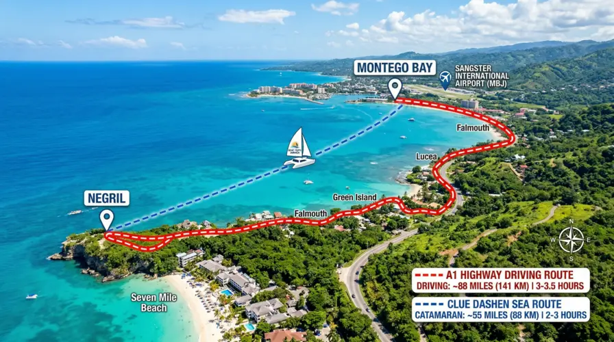 Travel Time from Montego Bay to Negril: Road vs. Sea Options